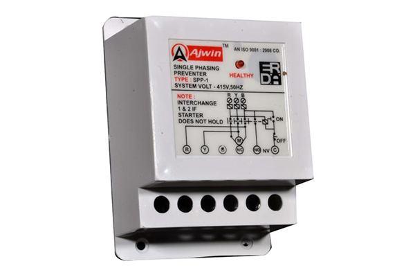 Ajwin Mini Voltage Sensing Single Phasing Preventer Protects Motor Against Single Phasing,Reverse Phasing And Unbalance Supply Of Voltage. It Can Be Used For Any HP Motors. Trip Timedelay Is Given To Avoid Neusence Tripping.